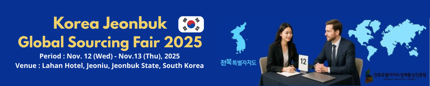 We are pleased to invite you to the Korea Jeonbuk Global Sourcing Fair 2025, the premier business matching event that connects global buyers with competitive Korean suppliers across a wide range of industries.